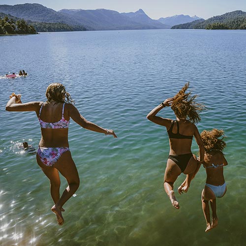 Para los amantes del aire libre, las opciones son infinitas: senderismo por la Cascada Inacayal, pesca en el río Correntoso, kayak en el lago Nahuel Huapi o simplemente disfrutar de las playas de arena volcánica del Lago Espejo.